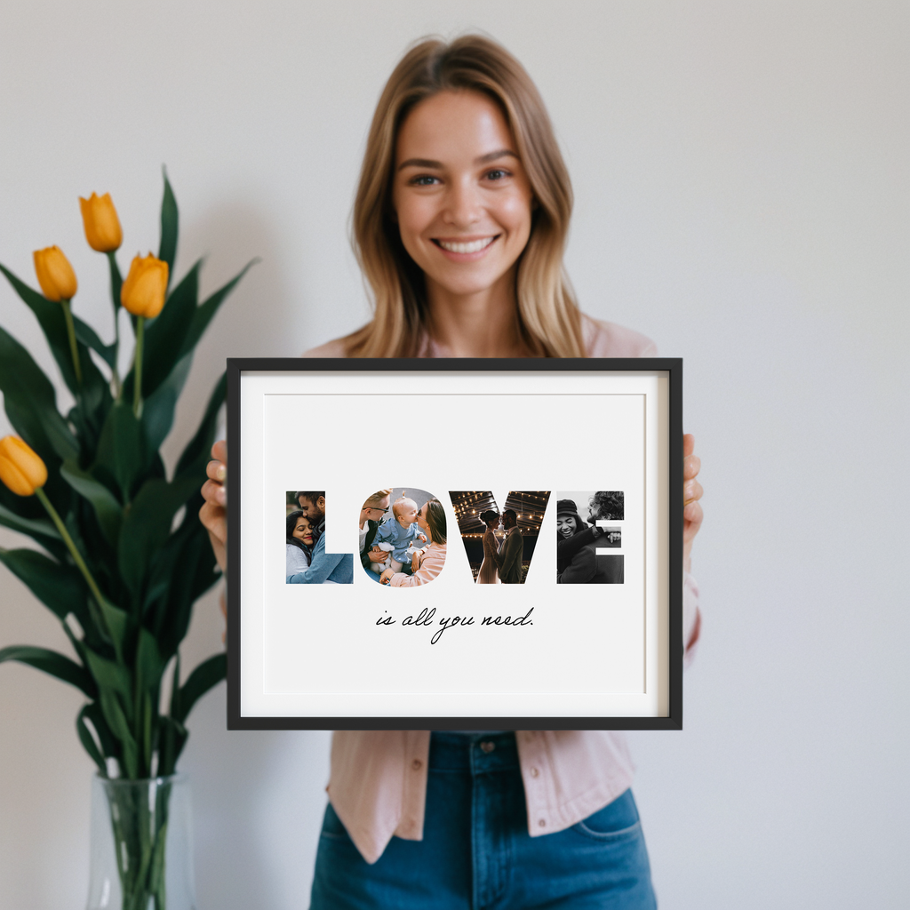 Eine doppelt persönliche Erinnerung: Die Kombination aus Wort und Fotos macht dein Fotowort zu einem einzigartigen Kunstwerk – weit mehr als eine gewöhnliche Fotocollage!